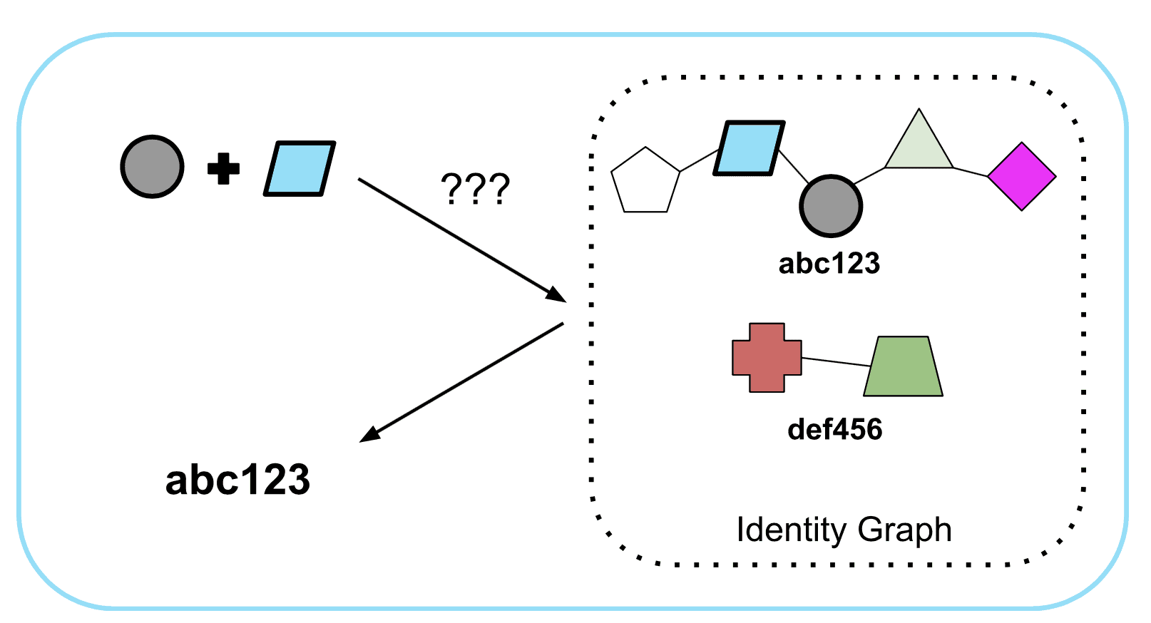 - allowing our customers to query for an identity by inputting one or more pieces of contact information, and returning a consistent identifier if that information lies in one of our connected clusters from the graph build process (Resolve)