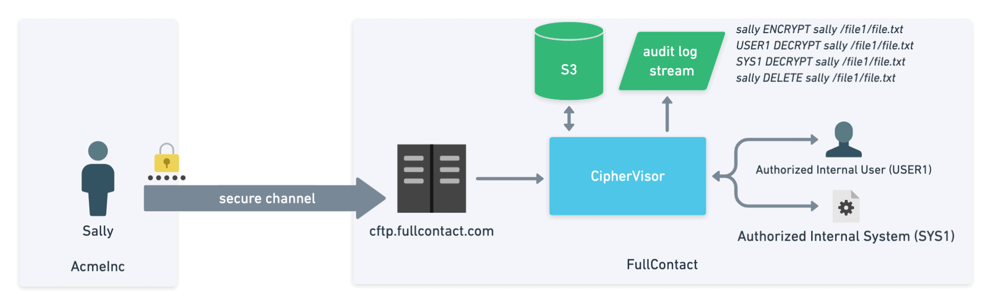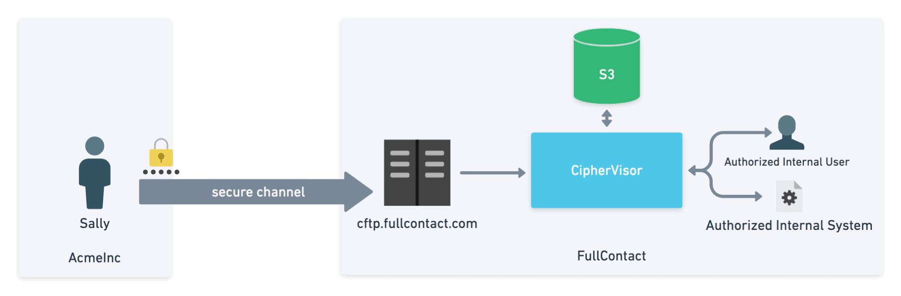 The File Transfer Protocol (FTP) is something that businesses rely on even to this day. While transferring your company’s sensitive data it is important to keep in mind how you are keeping that data secure. While using SFTP accomplishes many important security objectives, The FullContact-built CipherFTP (CFTP) accomplishes even more. CFTP is easy to use, provides in transit and at rest encryption by default, and provides out of the box internal logging and auditing.