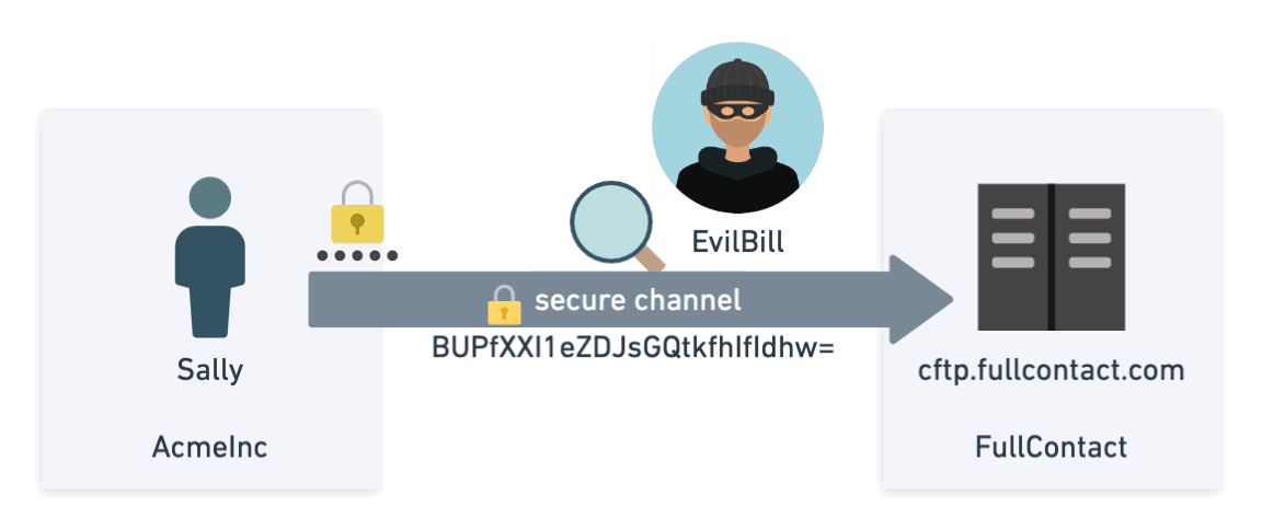 While SFTP addresses many more security concerns than the original FTP, we knew we could offer our customers even more protection by default. By building on top of existing standards and open source libraries (SFTP and the golang sftp library), FullContact introduced a new server called CipherFTP (CFTP). CFTP provides all of the protection of SFTP while introducing new secure-by-design features that usually need to be manually implemented or bolted onto SFTP. To examine the differences between FTP, SFTP, and CFTP, we will explore the security challenges that need to be addressed when transferring sensitive data over insecure networks: