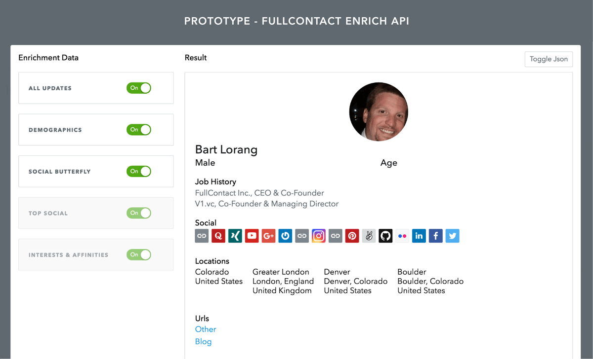 It demonstrated the ultimate power of fusing our Enrichment and Contact Storage technologies together, with a few flashy features thrown in for good measure. In essence, it empowered a user to provide multiple data points per enrichment request, create and manage subscriptions, customize views of the data, utilize large scale contact de-duplication and more.
