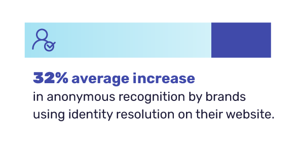 Brands using identity resolution on their website see a 32% average increase in website recognition and a 13% increase in conversion after personalizing content and guiding his or her shopping experience.